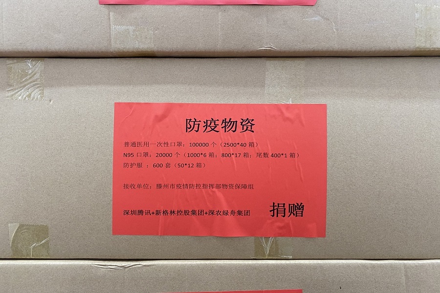 疫情當(dāng)前,責(zé)任在肩,新格林控股攜手深圳騰訊、深農(nóng)綠舟捐贈(zèng)防疫物資助力山東省滕州市抗疫工作,就抗疫物資帶領(lǐng)工人加班加點(diǎn),捐贈(zèng)一次性口罩、N95口罩及防護(hù)服等抗疫物資。
